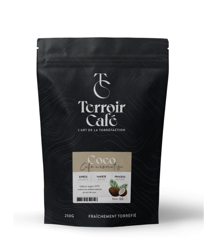 Le coco est un café rond et gourmand aux arômes naturels de noix de coco.